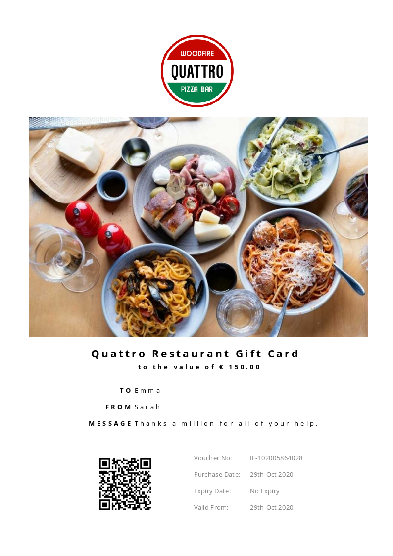 Quattro Restaurant allows you to purchase instantly printable gift vouchers, special offers and tickets using the Voucher Connect platform.